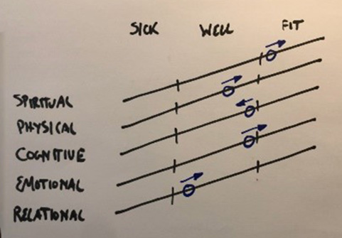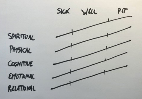Congratulations, you’ve just done your first 5DVector Check! From this simple exercise, what do you notice about your soul today? Where might you need attention? If you were on my team, I’d now ask you these questions: 1. After noticing your soul, what would you like to discuss? 2. Where do you see Jesus active in the parts of your soul this month? 3. What part of your soul most needs to be restored by God today? 4. How can I help you? The purpose of this assessment is to increase holistic self-awareness. Besides that, it also creates a shared vocabulary and invitation to discussion, and it provides early warning on downward trends long before they become catastrophic. You can clearly see where you (or the person you’re walking through this assessment with) needs help the most. In the next article we’ll consider how we help people plan to thrive in 5D. ●